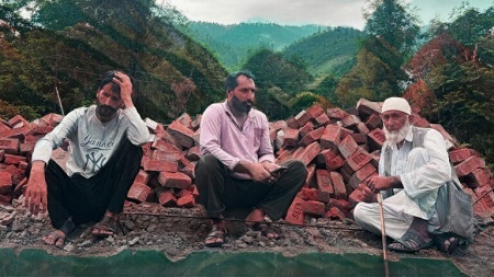 الصورة الأمامية: حقول الأرز في كشمير كما تظهر من أعلى. المصدر: كشمير لايف. صورة المقال: قرويون في أوري، شمال كشمير، يجلسون وسط أنقاض منازلهم التي دمرتها الاشتباكات بين القوات العسكرية الهندية والباكستانية في 26 يونيو 2025.
