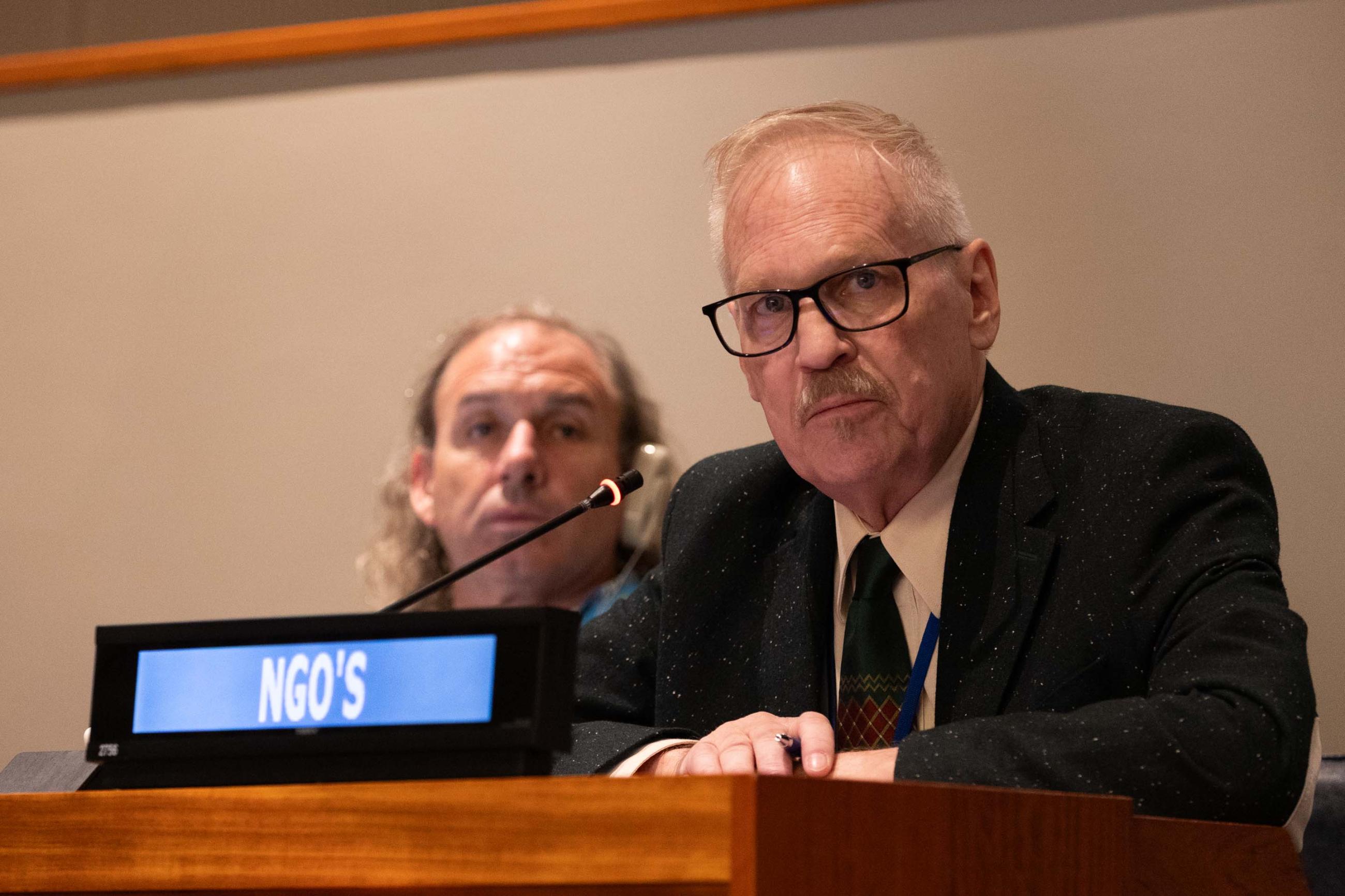 الصورة على الصفحة الأمامية: المدير العام لوزارة حماية البيئة رامي روزن يقدم التقرير الوطني الطوعي الإسرائيلي. المصدر: Kiara Worth/IISD Earth Negotiations Bulletin. الصورة في المقال: يلقى جوزيف شيكلا البيان الشفوي باسم المجموعات الرئيسية خلال عرض التقرير الوطني الطوعي الإسرائيلي في المنتدى السياسي الرفيع المستوى، 21 يوليو 2025. المصدر: Kiara Worth/IISD Earth Negotiations Bulletin.
